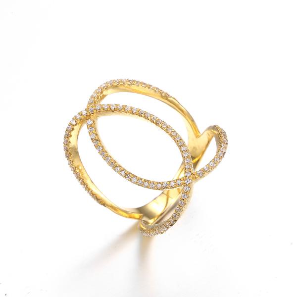 Circle Intersect 925 18K Yellow Plating CZ Rings Yellow Gold Engagement Rings Images |
